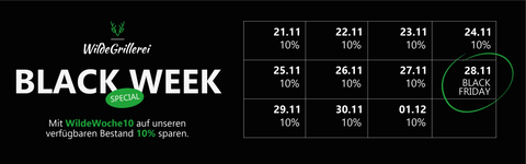 • Werksverkauf WildeGrillerei (bei UMDigital GmbH 2. OG) Öffnungszeiten: Mo - Fr: 08:00 - 13:00 Uhr - BAR & EC-ZAHLUNG MÖGLICH!